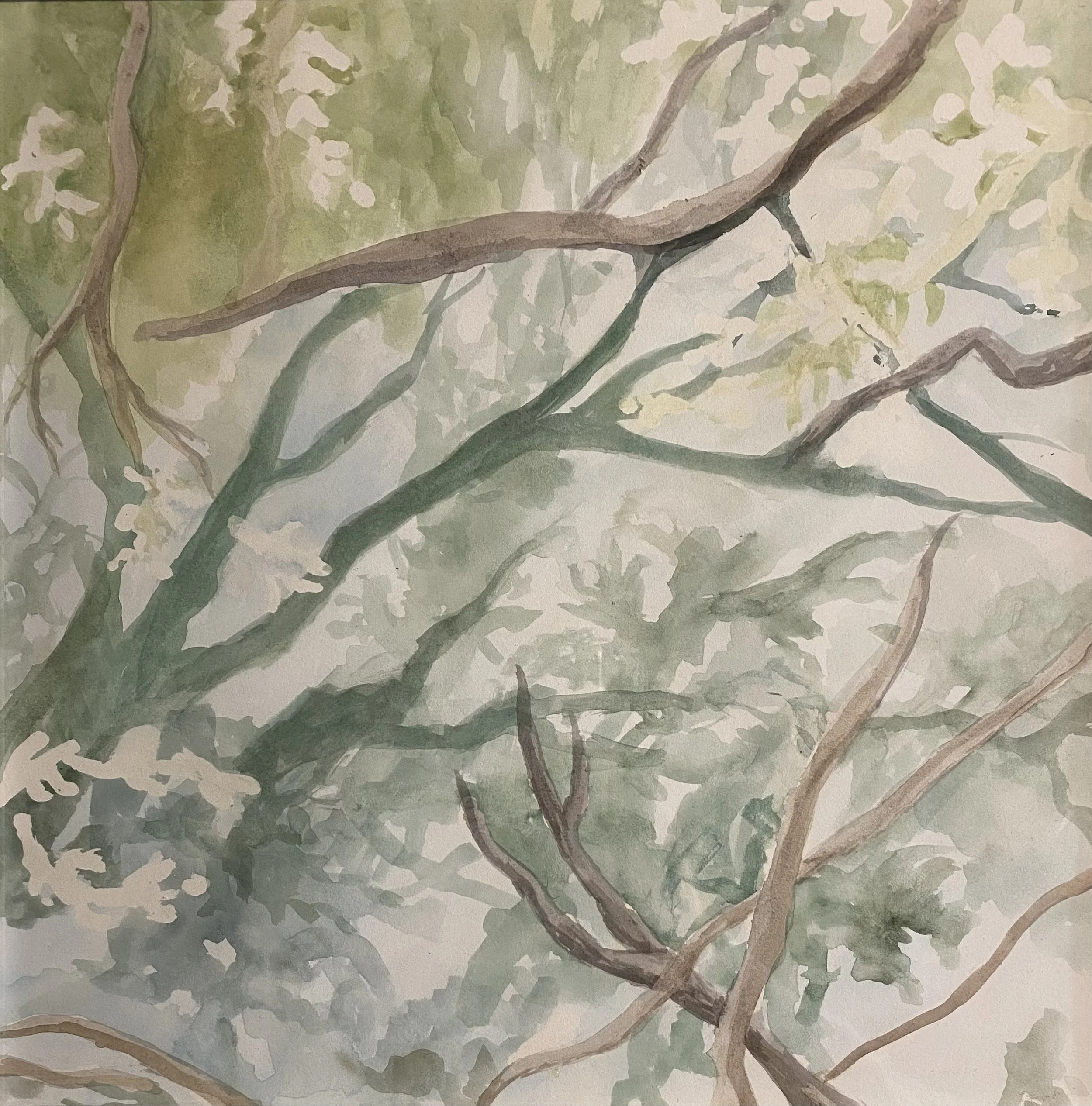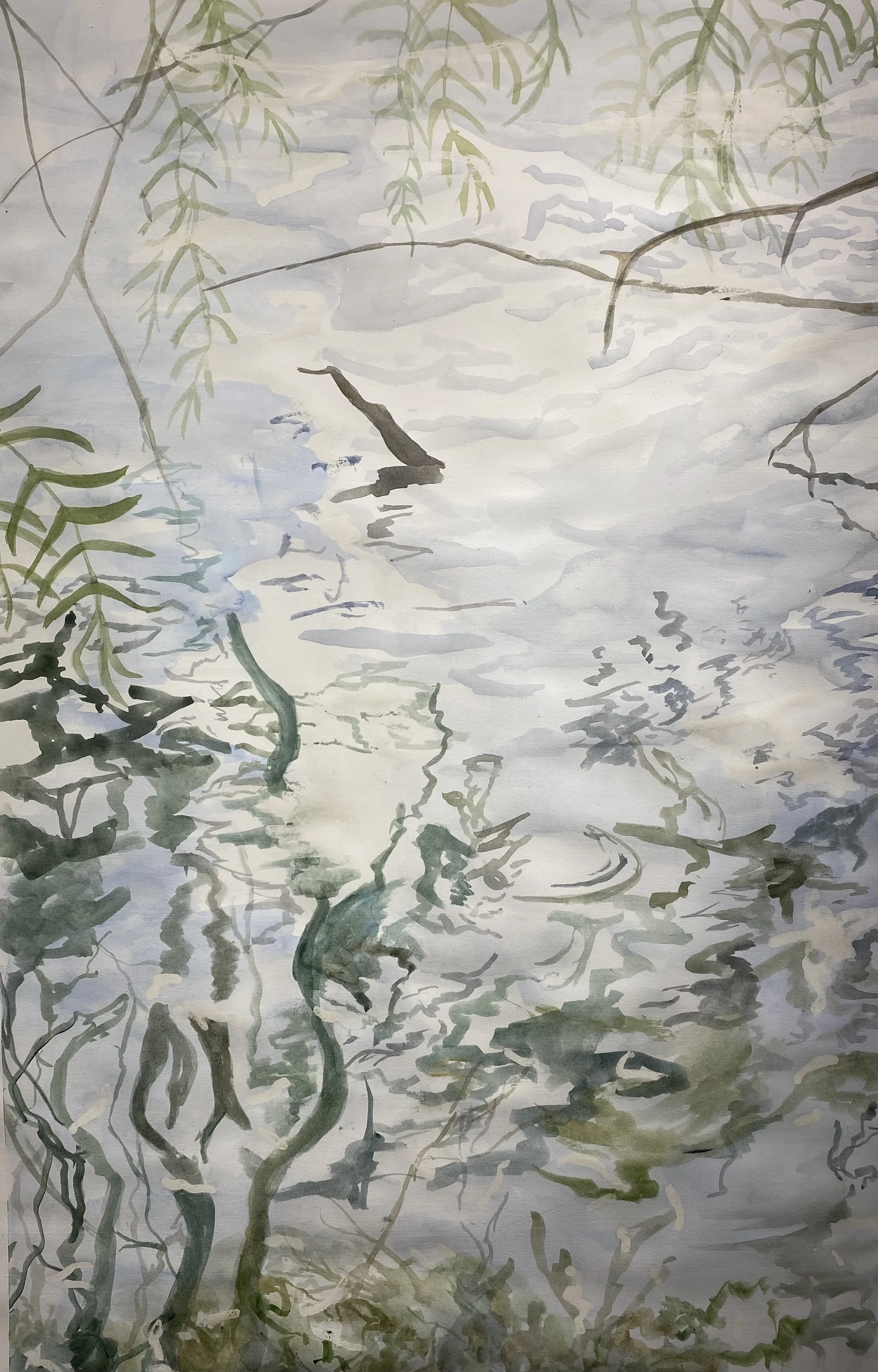 The title “Into the Mystery” is inspired by a NEEDTOBREATHE song that celebrates the joy that comes from being willing to explore the tension of seen and unseen. This series of paintings is an invitation to explore those contradictions gently. Reflections in the shallows of water are a vision of what is above and what is below at the same time, combining both of those spaces into the reflective surface. These liminal spaces in nature exist as a snapshot of the high and the low together, providing the space to mirror that process internally, with the hope that curiosity and ideas can be found even where concrete conclusions cannot. Growth is found in the struggle to make sense of ideas and experiences that seem to be in complete opposition. All images are inspired by reflections found at the Riparian Reserve in Gilbert, Arizona.