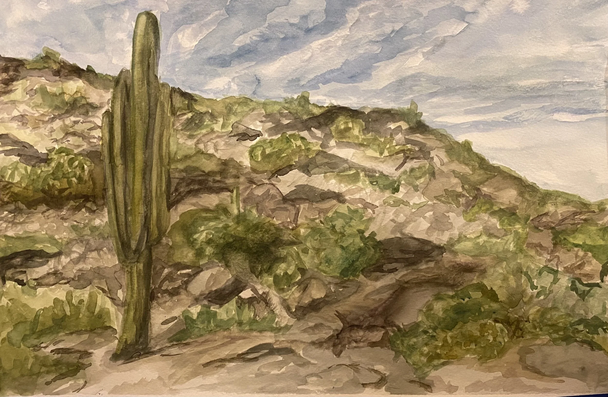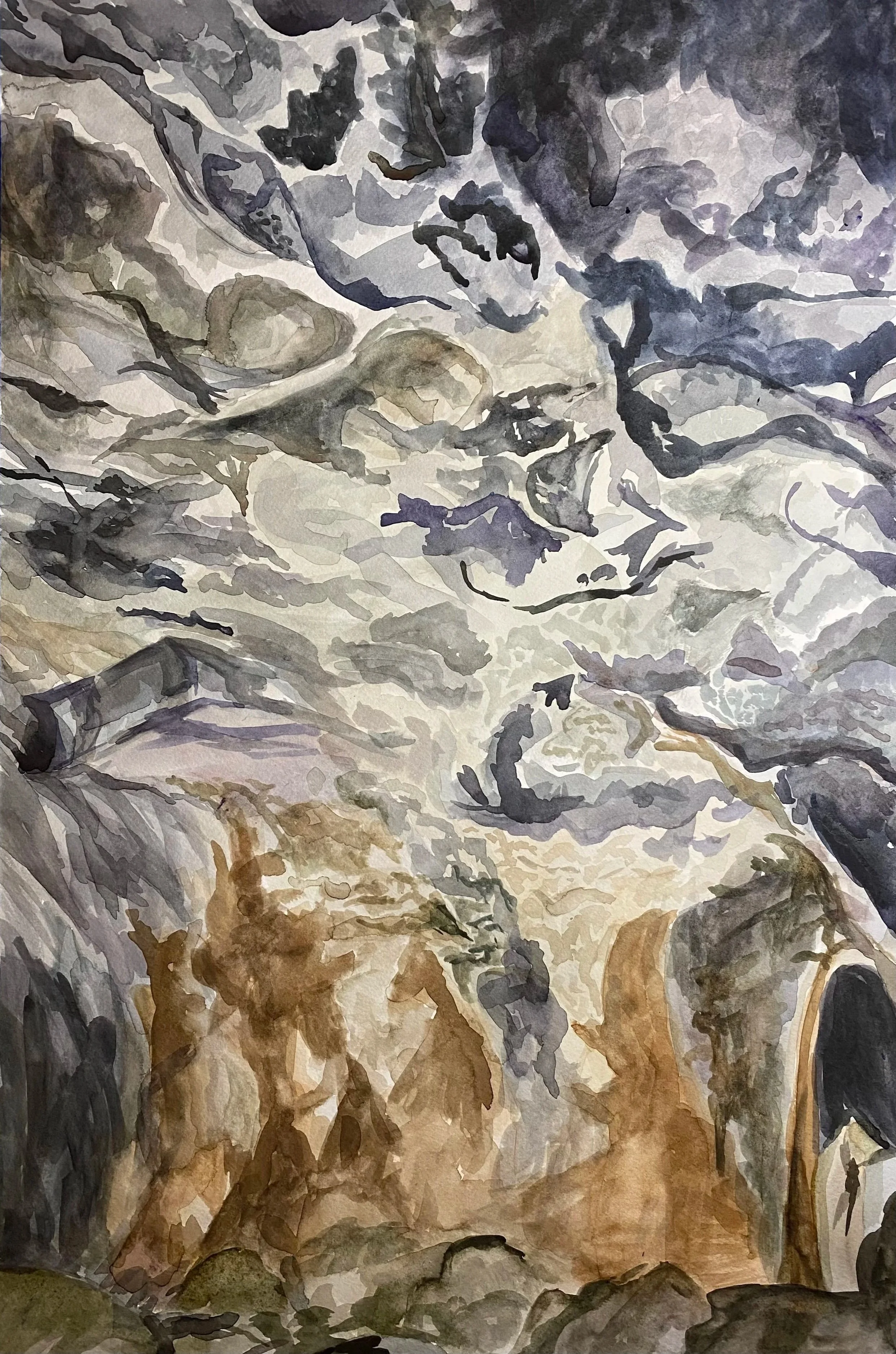 Watercolor lends itself well to the exploration of natural elements. Its opacity and ability to capture hard and soft edges create the nuances of rocks, trees, water, and other foliage while allowing details to shift in and out of focus on the paper, like light and shadow dancing through tree cover.